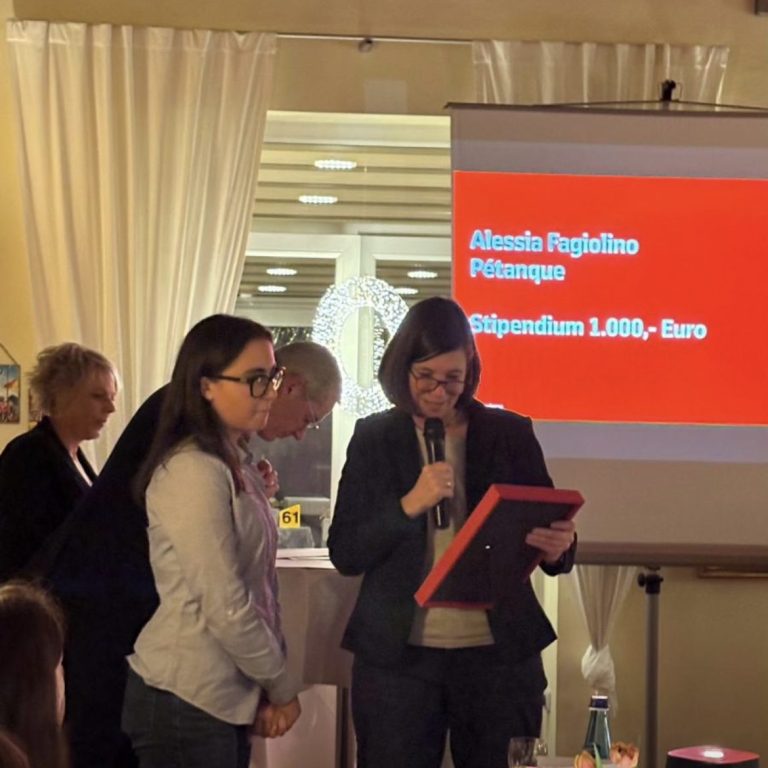 Wir sind besonders stolz auf unser Vereinsmitglied Alessia Fagiolino, die ein Stipendium in Höhe von 1.000 Euro erhalten hat. Diese Förderung dient der weiteren Entwicklung im Pétanque-Sport und unterstützt Alessia auf ihrem sportlichen Weg.